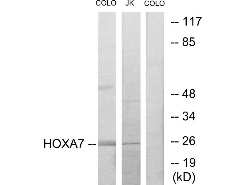 The antiserum was produced against synthesized peptide derived from internal of human HOXA7.