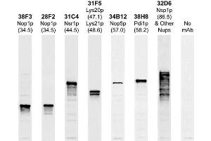 - Nop1p was originally identified as a nucleolar protein of bakers yeast, Saccharomyces cerevisiae (accession P15646). The Nop1p protein is 327 amino acids in size, is essential for yeast viability, and is localized in the nucleoli. The systematic name for S. cerevisiae Nop1 is YDL014W, and it is now known to be part of the small subunit processome complex, involved in the processing of pre-18S ribosomal RNA.Nop1p is the yeast homologue of a protein apparently found in all eukaryotes and archea generally called fibrillarin. Fibrillarin/Nop1p is extraordinarily conserved, so that the yeast and human proteins are 67% identical, and the human protein can functionally replace the yeast protein. This means that suitably cross-reactive antibodies to Nop1p/fibrillarin, like MCA-38F3, can be used to reveal nucleoli and study fibrillarin/Nop1p in all eukaryotes and archea tested to date. Human fibrillarin has been characterized (accession P22087) and the human fibrillarin gene is located on chromosome 19. Fibrillarin/Nop1p proteins have been cloned and sequenced from several other species (e.g. Mouse, accession P35550, Xenopus accession P22232, C. elegans accession Q22053, and S. pombe accession P35551. The N terminal approx. 80 amino acids contain multiple copies based on the peptide RGG, or arginine-glycine-glycine, sometimes referred to as GAR repeats, characteristic of the GAR family of molecules. The remaining approx. 240 amino acids consist of the so called fibrillarin domain. A fibrillarin homologue has also been identified in the genome of the archean Methanococcus (accession NC_000909). This protein lacks the RGG rich N-terminal extension but is clearly homologous to the other sequences throughout all of the fibrillarin domain. The 3D structure of this molecule has been determined and shown to consist of 2 extended beta,-sheets flanked by alpha,-helixes (Medline link). Patients with the autoimmune disease scleroderma often have strong circulating autoantibodies to a approx. 34 kDa protein which was subsequently found to be fibrillarin. Recent studies show that knock out of the fibrillarin gene in mice results in embryonic lethality, although mice with only one functional fibrillarin/Nop1p gene were viable. This antibody is becoming widely used as a convenient marker for nucleoli in a wide variety of species (e.g. 4-6). The HGNC name for this protein is FBL.