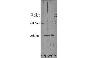 - The antibody solution can be used at dilutions of at least 1:1,000 in immunofluorescence experiments. In western blotting using chemiluminescence it can be used at dilutions of 1:10,000 or lower.
