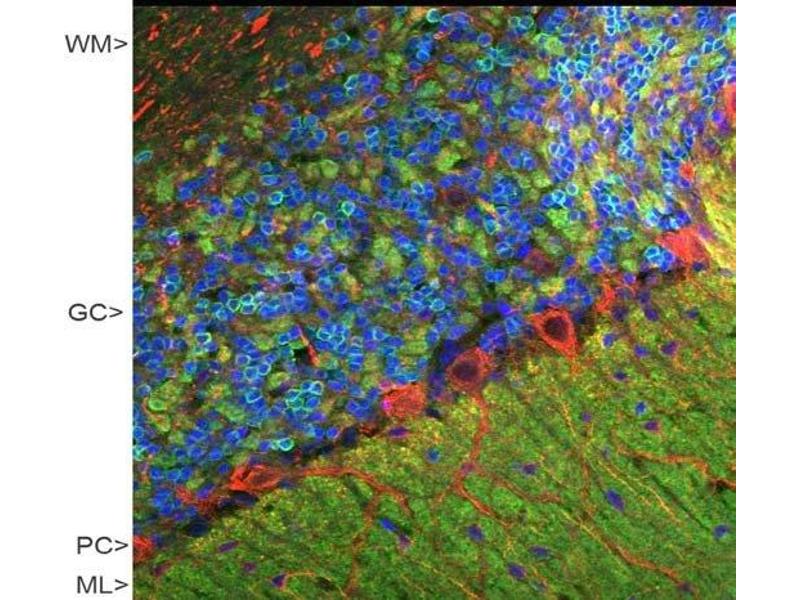 Visinin was originally isolated biochemically from chicken retina as a major protein of approx. 24 kDa on SDS-PAGE. Following cloning and sequencing of visinin, several visinin like proteins were discovered by homology screening. One of these, Visinin-like protein 1 is a small Calcium binding protein which is very abundant in the nervous system and is found only in neurons, though different neurons have different levels of expression. It is particularly concentrated in cerebellar Purkinje cells, and tends to be most abundant in perikarya and dendrites. The protein was discovered independently by several groups and is therefore also sometimes known as hippocalcin-like protein 3, HLP3, HPCAL3, HUVISL1, VLP-1, VILIP and VILIP-1. The protein belongs to the large superfamily of calmodulin and paravalbumin type proteins which function by binding Calcium ions. Calcium binding alters the confomation of these proteins and allow them to interact with other binding partners, the properties of which they may alter. Visinin-like protein 1 has four EF hand domains, which are negatively charged helix-turn-helix peptides which are responsible for Calcium binding. Visinin-like protein 1 is 191 amino acids in size and has a molecular weight on SDS-PAGE of 22 kDa. The protein has recently been suggested to be a useful biomarker of Alzheimer's disease and traumatic brain injury. The HGNC name for this protein is VSNL1.