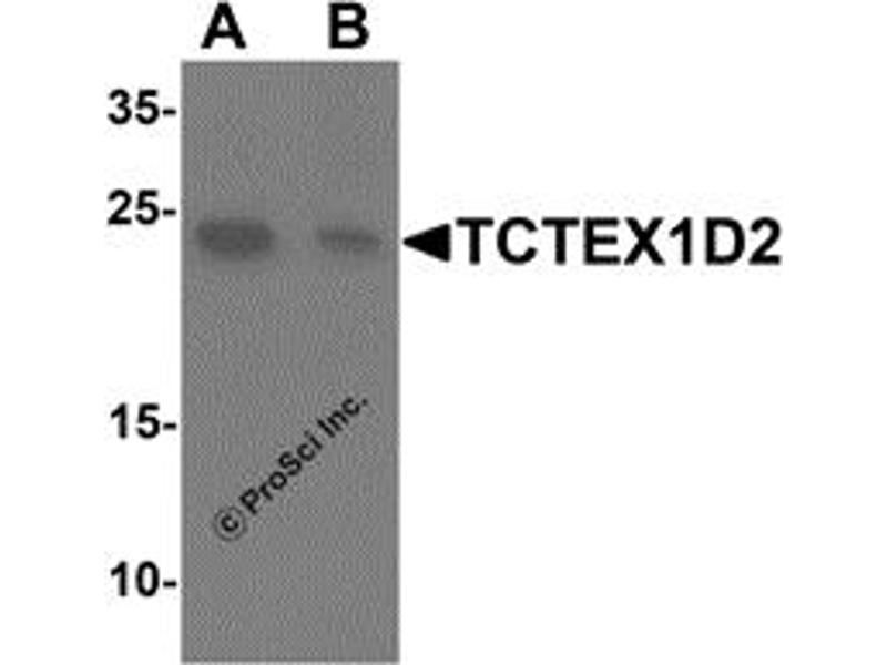 - TCTEX1D2 antibody was raised against a 16 amino acid synthetic peptide near the amino terminus of human TCTEX1D2.