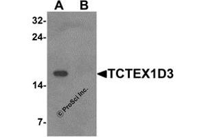 TCTEX1D3 antibody was raised against a 19 amino acid synthetic peptide near the amino terminus of human TCTEX1D3.