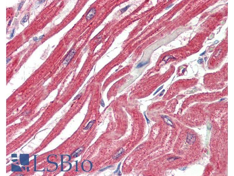 Immunohistochemistry: Paraffin embedded Human Heart. Recommended concentration: 5 μg/mL.