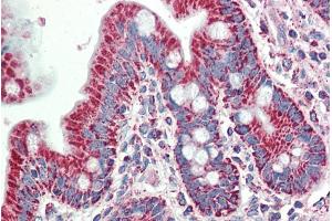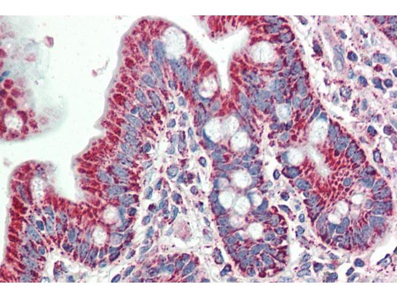 Immunohistochemistry: Paraffin embedded Human Small Intestine. Recommended concentration: 5 μg/mL.