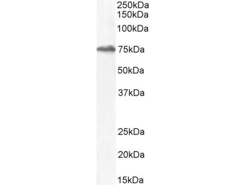 Western Blot: Approx 75 kDa band observed in Mouse Testis lysates (calculated MW of 76.8 kDa according to Mouse NP_001091673.1 ). Recommended concentration: 2-3 μg/mL. Primary incubation 1 hour at room temperature.