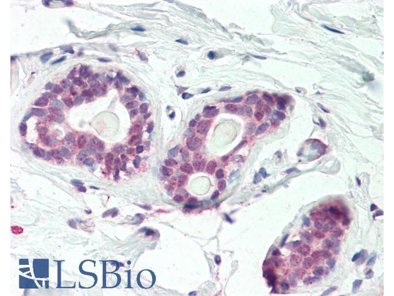 Immunohistochemistry: Paraffin embedded Human Breast. Recommended concentration: 5 μg/mL.