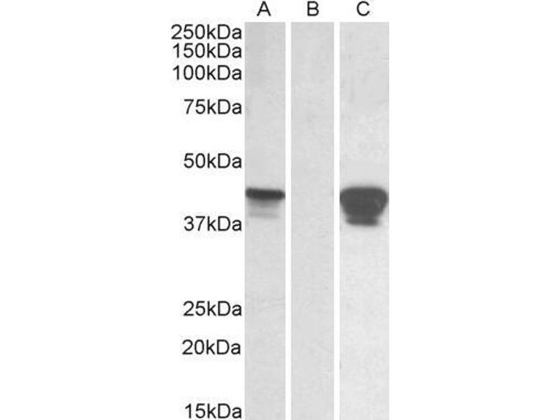Western Blot: In transfected HEK293 transiently expressing Human SLAMF8 a band of approx. 45 kDa is observed. This band is not observed in the non-transfected HEK293. The calculated molecular size is 31.7 kDa according to NP_064510.1. Recommended concentra