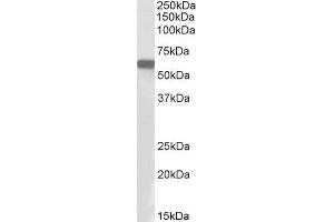 Western Blot: Approx 60 kDa band observed in nuclear lysates of cell line HeLa (calculated MW of 46.9 kDa according to NP_005216.1). Recommended concentration: 1-3 μg/mL.