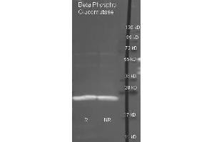 Application Note: Anti-Beta-Phosphoglucomutase Biotin has been tested by ELISA and western blot. This product is assayed against 1.0 μg of Beta-Phosphoglucomutase in a standard capture ELISA using Peroxidase Conjugated Streptavidin #S000-03 and ABTS (2,2'-azino-bis-[3-ethylbenthiazoline-6-sulfonic acid]) code # ABTS-100 as a substrate for 30 minutes at room temperature.  A working dilution of 1:10,000 to 1:50,000 is suggested for this product.