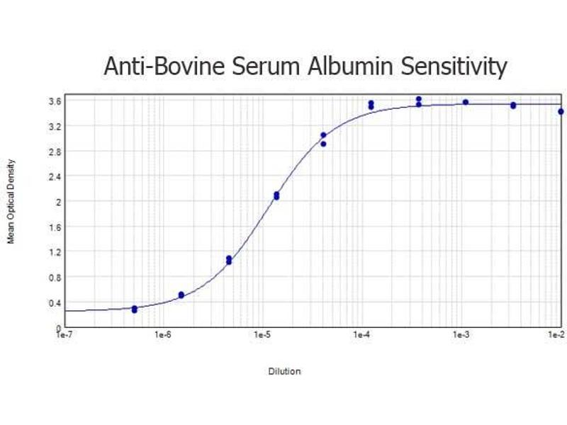 Immunogen: Anti-Bovine Serum Albumin antibody was produced by repeated immunizations with bovine serum albumin.