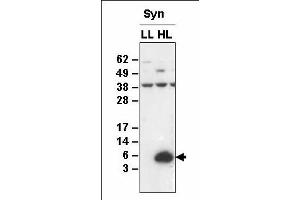 Crossreacts with HliA and HliB from Synechocystis sp. PCC 6803. These two proteins can be separated by high-resolution gel electrophoresis.