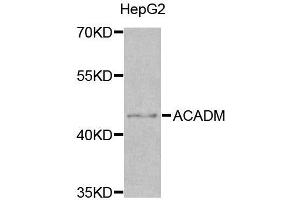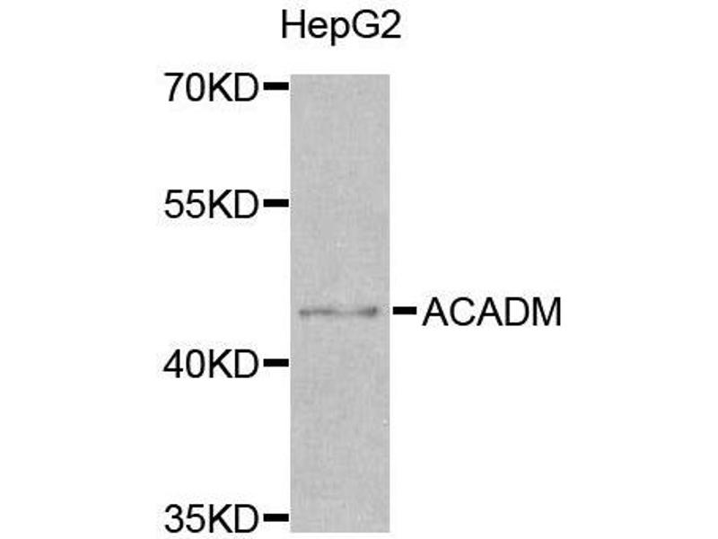 - This gene encodes the medium-chain specific (C4 to C12 straight chain) acyl-Coenzyme A dehydrogenase. The homotetramer enzyme catalyzes the initial step of the mitochondrial fatty acid beta-oxidation pathway. Defects in this gene cause medium-chain acyl-CoA dehydrogenase deficiency, a disease characterized by hepatic dysfunction, fasting hypoglycemia, and encephalopathy, which can result in infantile death. Alternatively spliced transcript variants encoding different isoforms have been found for this gene.,ACADM,ACAD1,MCAD,MCADH,Cancer,Signal Transduction,Endocrine & Metabolism,Mitochondrial metabolism,Mitochondrial markers,Lipid Metabolism,Cardiovascular,Lipids,Fatty Acids,ACADM