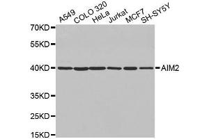 AIM2 is a member of the IFI20X /IFI16 family. It plays a putative role in tumorigenic reversion and may control cell proliferation. Interferon-gamma induces expression of AIM2.,AIM2,PYHIN4,Epigenetics & Nuclear Signaling,Cancer,Tumor suppressors,AIM2