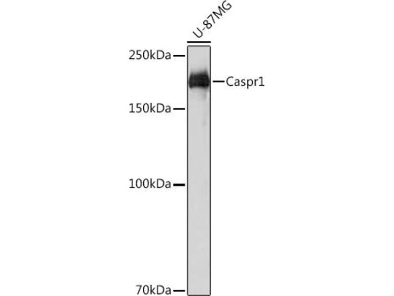 The gene product was initially identified as a 190-kD protein associated with the contactin-PTPRZ1 complex. The 1,384-amino acid protein, also designated p190 or CASPR for 'contactin-associated protein,' includes an extracellular domain with several putative protein-protein interaction domains, a putative transmembrane domain, and a 74-amino acid cytoplasmic domain. Northern blot analysis showed that the gene is transcribed predominantly in brain as a transcript of 6.2 kb, with weak expression in several other tissues tested. The architecture of its extracellular domain is similar to that of neurexins, and this protein may be the signaling subunit of contactin, enabling recruitment and activation of intracellular signaling pathways in neurons. [provided by RefSeq, Jan 2009],CASPR, CNTNAP, NRXN4, P190,Cell Type Marker,Cell Type Marker_Oligodendrocyte marker,Neuroscience,CNTNAP1