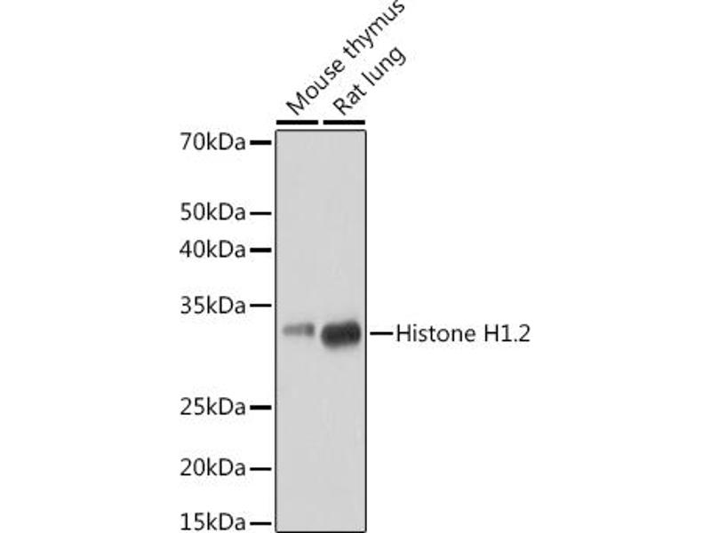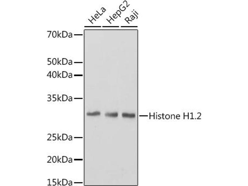 Histones are basic nuclear proteins responsible for nucleosome structure of the chromosomal fiber in eukaryotes. Two molecules of each of the four core histones (H2A, H2B, H3, and H4) form an octamer, around which approximately 146 bp of DNA is wrapped in repeating units, called nucleosomes. The linker histone, H1, interacts with linker DNA between nucleosomes and functions in the compaction of chromatin into higher order structures. This gene is intronless and encodes a replication-dependent histone that is a member of the histone H1 family. Transcripts from this gene lack polyA tails but instead contain a palindromic termination element. This gene is found in the large histone gene cluster on chromosome 6. [provided by RefSeq, Aug 2015],H1.2, H1C, H1F2, H1s-1,DNA Damage & Repair,Epigenetics & Nuclear Signaling,Histones,HIST1H1C