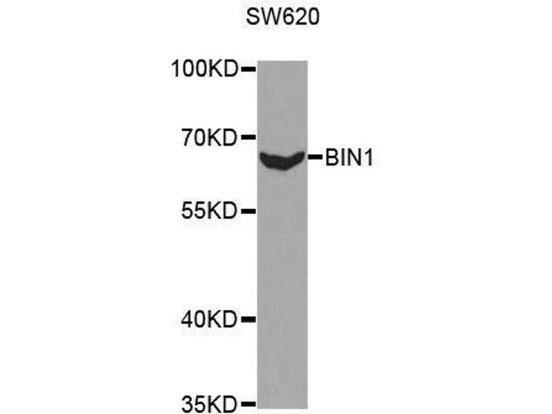 This gene encodes several isoforms of a nucleocytoplasmic adaptor protein, one of which was initially identified as a MYC-interacting protein with features of a tumor suppressor. Isoforms that are expressed in the central nervous system may be involved in synaptic vesicle endocytosis and may interact with dynamin, synaptojanin, endophilin, and clathrin. Isoforms that are expressed in muscle and ubiquitously expressed isoforms localize to the cytoplasm and nucleus and activate a caspase-independent apoptotic process. Studies in mouse suggest that this gene plays an important role in cardiac muscle development. Alternate splicing of the gene results in several transcript variants encoding different isoforms. Aberrant splice variants expressed in tumor cell lines have also been described.,BIN1,AMPH2,AMPHL,SH3P9,Epigenetics & Nuclear Signaling,Cancer,Tumor suppressors,Cell Biology & Developmental Biology,Cell Cycle,Cell cycle inhibitors,BIN1
