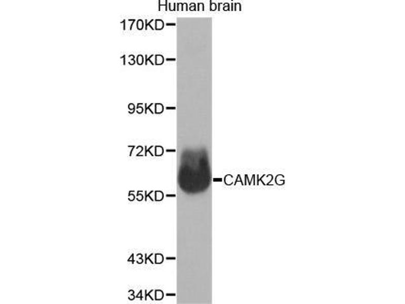 The product of this gene is one of the four subunits of an enzyme which belongs to the serine/threonine protein kinase family, and to the Ca(2+)/calmodulin-dependent protein kinase subfamily. Calcium signaling is crucial for several aspects of plasticity at glutamatergic synapses. In mammalian cells the enzyme is composed of four different chains: alpha, beta, gamma, and delta. The product of this gene is a gamma chain. Many alternatively spliced transcripts encoding different isoforms have been described but the full-length nature of all the variants has not been determined.,CAMK2G,CAMK,CAMK-II,CAMKG,Signal Transduction,G protein signaling,G2/M DNA Damage Checkpoint,Kinase,Phospholipase Signaling Pathway,ErbB-HER Signaling Pathway,Cell Biology & Developmental Biology,Apoptosis,Mitochondrial Control of Apoptosis,Immunology & Inflammation,B Cell Receptor Signaling Pathway,Neuroscience,Calcium Signaling,CAMK2G