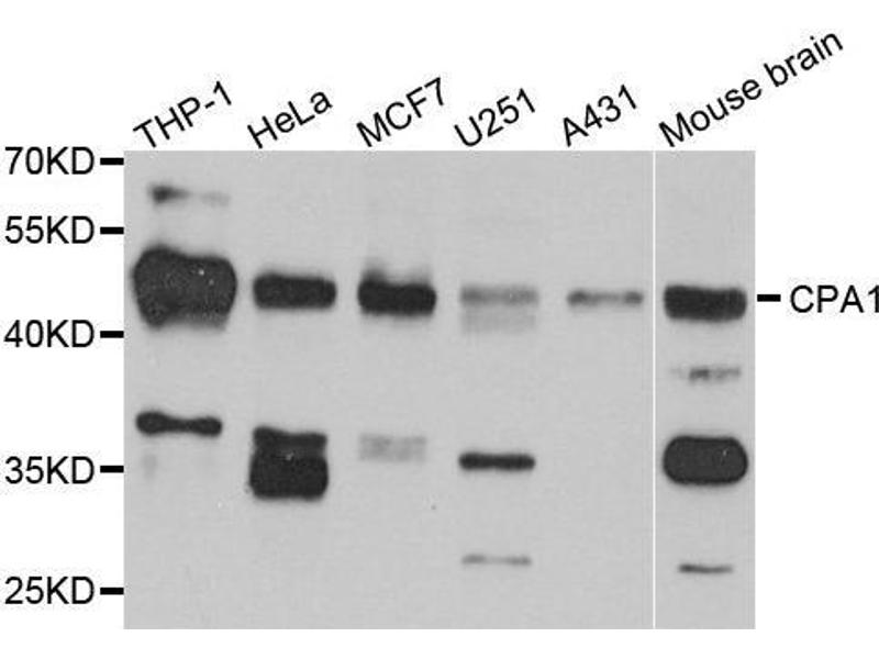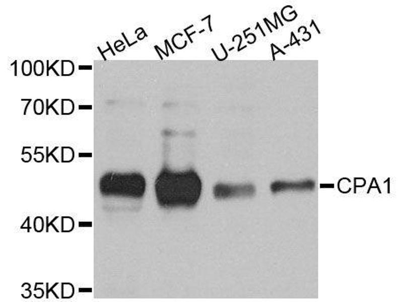 The Rabbit Polyclonal anti-CPA1 antibody (ABIN1679343) specifically detects CPA1 in WB and IHC.