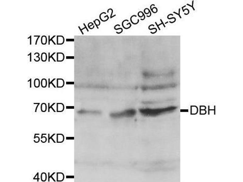 The Rabbit Polyclonal anti-DBH antibody has been validated for WB. It is suitable to detect DBH in samples from Human.
