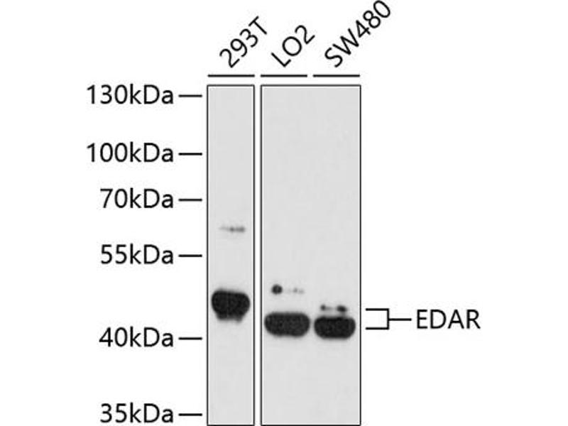 - This gene encodes a member of the tumor necrosis factor receptor family. The encoded transmembrane protein is a receptor for the soluble ligand ectodysplasin A, and can activate the nuclear factor-kappaB, JNK, and caspase-independent cell death pathways. It is required for the development of hair, teeth, and other ectodermal derivatives. Mutations in this gene result in autosomal dominant and recessive forms of hypohidrotic ectodermal dysplasia.,EDAR,DL,ECTD10A,ECTD10B,ED1R,ED3,ED5,EDA-A1R,EDA1R,EDA3,HRM1,Epigenetics & Nuclear Signaling,Signal Transduction,Cell Biology & Developmental Biology,Apoptosis,Growth factor,TNF,EDAR