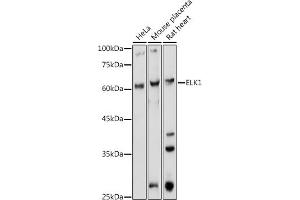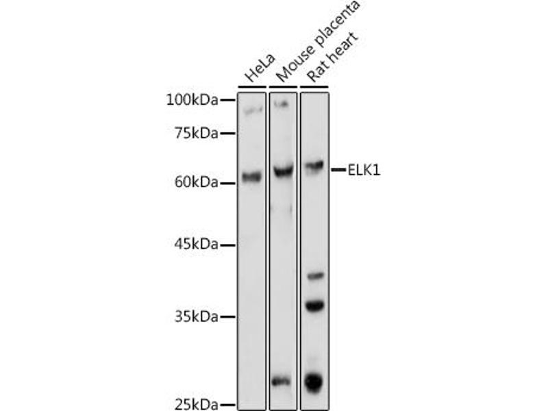 This gene is a member of the Ets family of transcription factors and of the ternary complex factor (TCF) subfamily. Proteins of the TCF subfamily form a ternary complex by binding to the the serum response factor and the serum response element in the promoter of the c-fos proto-oncogene. The protein encoded by this gene is a nuclear target for the ras-raf-MAPK signaling cascade. This gene produces multiple isoforms by using alternative translational start codons and by alternative splicing. Related pseudogenes have been identified on chromosomes 7 and 14.,ELK1,Epigenetics & Nuclear Signaling,Transcription Factors,Cancer,Signal Transduction,Kinase,ErbB-HER Signaling Pathway,MAPK-Erk Signaling Pathway,MAPK-JNK Signaling Pathway,MAPK-P38 Signaling Pathway,Immunology & Inflammation,B Cell Receptor Signaling Pathway,Neuroscience,Neurodegenerative Diseases,ELK1