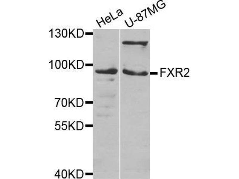 The protein encoded by this gene is a RNA binding protein containing two KH domains and one RCG box, which is similar to FMRP and FXR1. It associates with polyribosomes, predominantly with 60S large ribosomal subunits. This encoded protein may self-associate or interact with FMRP and FXR1. It may have a role in the development of fragile X mental retardation syndrome.,FXR2,FMR1L2,FXR2P,Epigenetics & Nuclear Signaling,RNA Binding,Neuroscience,Cell Type Marker,Neurodegenerative Diseases,Neuron marker,Dendrite marker,Synapse marker,FXR2