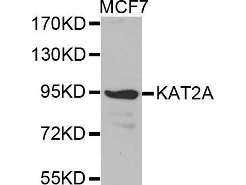 KAT2A, or GCN5, is a histone acetyltransferase (HAT) that functions primarily as a transcriptional activator. It also functions as a repressor of NF-kappa-B (see MIM 164011) by promoting ubiquitination of the NF-kappa-B subunit RELA (MIM 164014) in a HAT-independent manner (Mao et al., 2009 [PubMed 19339690]).[supplied by OMIM, Sep 2009],KAT2A,GCN5,GCN5L2,PCAF-b,hGCN5,Epigenetics & Nuclear Signaling,Chromatin Modifying Enzymes,Acetylation,Nuclear Receptor Signaling,Signal Transduction,Cell Biology & Developmental Biology,Notch Signaling Pathway,KAT2A
