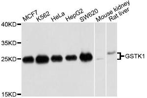 This gene encodes a member of the kappa class of the glutathione transferase superfamily of enzymes that function in cellular detoxification. The encoded protein is localized to the peroxisome and catalyzes the conjugation of glutathione to a wide range of hydrophobic substates facilitating the removal of these compounds from cells. Alternative splicing results in multiple transcript variants.,GSTK1,GST,GST 13-13,GST13,GST13-13,GSTK1-1,hGSTK1,Signal Transduction,Cell Biology & Developmental Biology,Endocrine & Metabolism,Mitochondrial metabolism,Mitochondrial markers,Drug metabolism,GSTK1