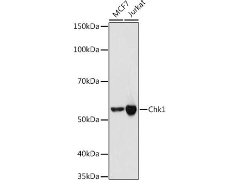 The protein encoded by this gene belongs to the Ser/Thr protein kinase family. It is required for checkpoint mediated cell cycle arrest in response to DNA damage or the presence of unreplicated DNA. This protein acts to integrate signals from ATM and ATR, two cell cycle proteins involved in DNA damage responses, that also associate with chromatin in meiotic prophase I. Phosphorylation of CDC25A protein phosphatase by this protein is required for cells to delay cell cycle progression in response to double-strand DNA breaks. Several alternatively spliced transcript variants have been found for this gene. [provided by RefSeq, Oct 2011],CHK1,Apoptosis,Cancer,Cell Biology & Developmental Biology,Cell Cycle,DNA Damage & Repair,Epigenetics & Nuclear Signaling,G1/S Checkpoint,G2/M DNA Damage Checkpoint,Kinase,Kinase_Serine/threonine kinases,Protein phosphorylation,Signal Transduction,CHEK1
