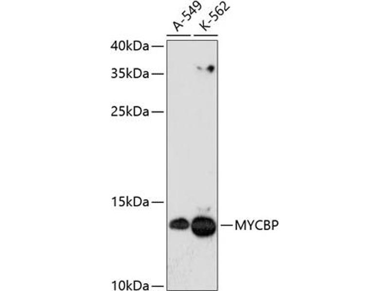 The protein encoded by this gene binds to the N-terminus of the oncogenic protein C-MYC, enhancing the ability of C-MYC to activate E box-dependent transcription. The encoded protein is normally found in the cytoplasm, but it translocates to the nucleus during S phase of the cell cycle and associates with C-MYC. This protein may be involved in spermatogenesis. This gene can be silenced by microRNA-22. Two transcript variants, one protein-coding and the other probably not protein-coding, have been found for this gene.,MYCBP,AMY-1,Epigenetics & Nuclear Signaling,MYCBP