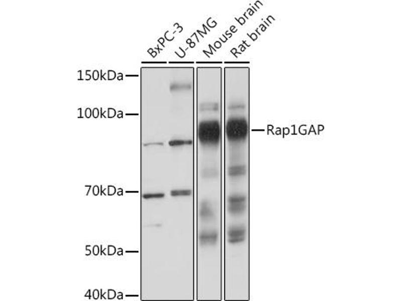 This gene encodes a type of GTPase-activating-protein (GAP) that down-regulates the activity of the ras-related RAP1 protein. RAP1 acts as a molecular switch by cycling between an inactive GDP-bound form and an active GTP-bound form. The product of this gene, RAP1GAP, promotes the hydrolysis of bound GTP and hence returns RAP1 to the inactive state whereas other proteins, guanine nucleotide exchange factors (GEFs), act as RAP1 activators by facilitating the conversion of RAP1 from the GDP- to the GTP-bound form. In general, ras subfamily proteins, such as RAP1, play key roles in receptor-linked signaling pathways that control cell growth and differentiation. RAP1 plays a role in diverse processes such as cell proliferation, adhesion, differentiation, and embryogenesis. Alternative splicing results in multiple transcript variants encoding distinct proteins. [provided by RefSeq, Aug 2011],RAP1GA1, RAP1GAP1, RAP1GAPII, RAPGAP,Cancer,Epigenetics & Nuclear Signaling,Signal Transduction,Tumor suppressors,RAP1GAP