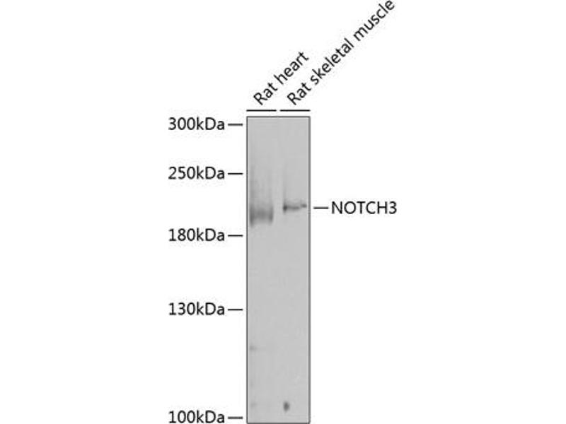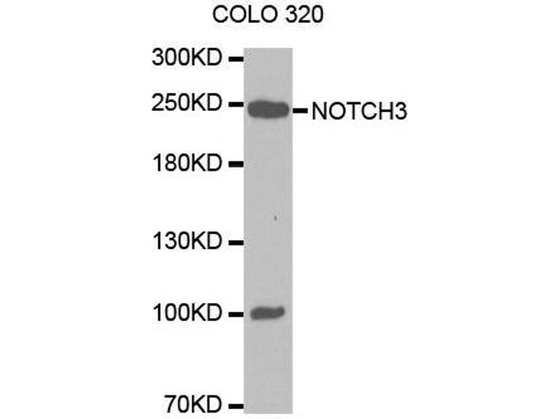 This gene encodes the third discovered human homologue of the Drosophilia melanogaster type I membrane protein notch. In Drosophilia, notch interaction with its cell-bound ligands (delta, serrate) establishes an intercellular signalling pathway that plays a key role in neural development. Homologues of the notch-ligands have also been identified in human, but precise interactions between these ligands and the human notch homologues remains to be determined. Mutations in NOTCH3 have been identified as the underlying cause of cerebral autosomal dominant arteriopathy with subcortical infarcts and leukoencephalopathy (CADASIL).,NOTCH3,CADASIL,CADASIL1,CASIL,IMF2,LMNS,notch 3,Epigenetics & Nuclear Signaling,Transcription Factors,Signal Transduction,Cell Biology & Developmental Biology,Cell Cycle,Cell differentiation,Notch Signaling Pathway,ESC Pluripotency and Differentiation,Neuroscience,Stem Cells,Hematopoietic Progenitors,Neural Stem Cells,Cardiovascular,Heart,Cardiogenesis,NOTCH3
