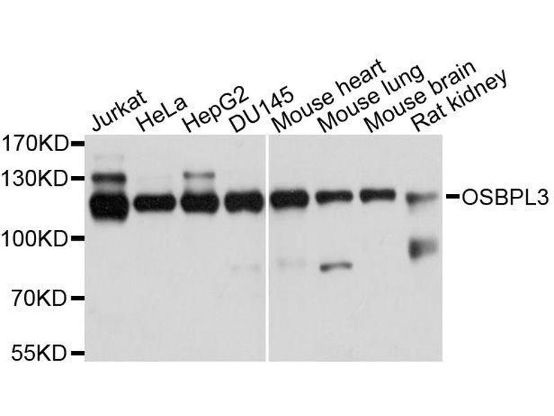 The Rabbit Polyclonal anti-OSBPL3 antibody has been validated for WB and IHC. It is suitable to detect OSBPL3 in samples from Human.