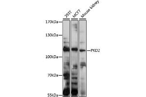 This gene encodes a member of the polycystin protein family. The encoded protein is a multi-pass membrane protein that functions as a calcium permeable cation channel, and is involved in calcium transport and calcium signaling in renal epithelial cells. This protein interacts with polycystin 1, and they may be partners in a common signaling cascade involved in tubular morphogenesis. Mutations in this gene are associated with autosomal dominant polycystic kidney disease type 2.,PKD2,APKD2,PC2,PKD4,Pc-2,TRPP2,Cancer,Signal Transduction,Cell Biology & Developmental Biology,Cell Cycle,Centrosome,Growth factor,EGF,Endocrine & Metabolism,Neuroscience,Calcium Signaling,PKD2