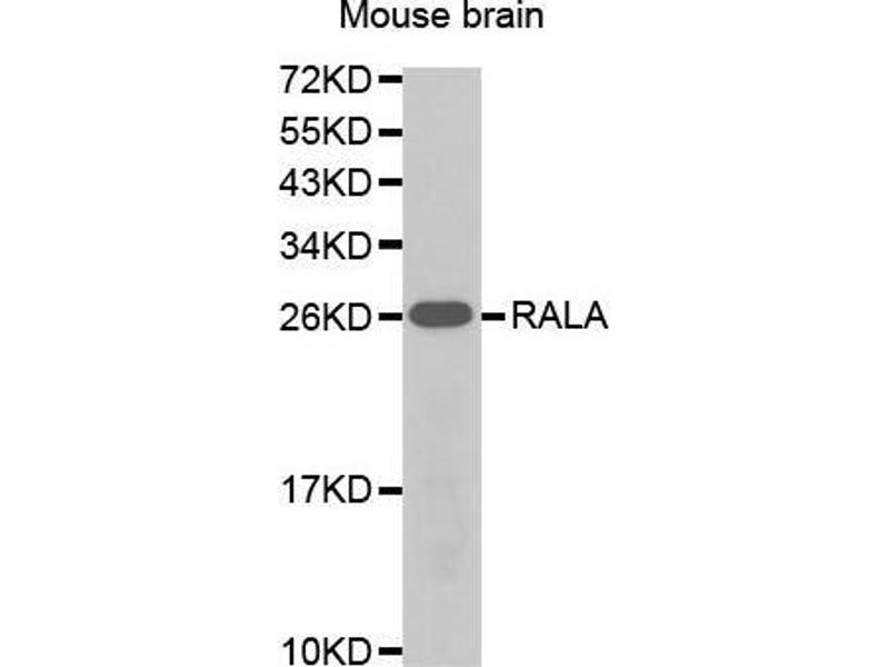 The product of this gene belongs to the small GTPase superfamily, Ras family of proteins. GTP-binding proteins mediate the transmembrane signaling initiated by the occupancy of certain cell surface receptors. This gene encodes a low molecular mass ras-like GTP-binding protein that shares about 50 % similarity with other ras proteins.,RALA,RAL,Epigenetics & Nuclear Signaling,Cancer,Signal Transduction,G protein signaling,Signal Transduction,Cell Biology & Developmental Biology,Cell Adhesion,RALA