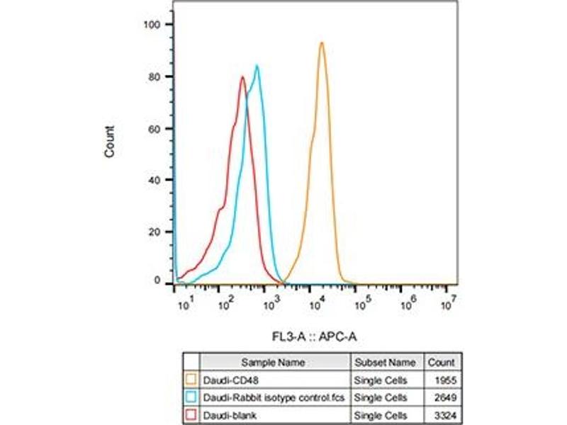 - This gene encodes a member of the CD2 subfamily of immunoglobulin-like receptors which includes SLAM (signaling lymphocyte activation molecules) proteins. The encoded protein is found on the surface of lymphocytes and other immune cells, dendritic cells and endothelial cells, and participates in activation and differentiation pathways in these cells. The encoded protein does not have a transmembrane domain, however, but is held at the cell surface by a GPI anchor via a C-terminal domain which maybe cleaved to yield a soluble form of the receptor. Multiple transcript variants encoding different isoforms have been found for this gene. [provided by RefSeq, Dec 2011],BCM1, BLAST, BLAST1, MEM-102, SLAMF2, hCD48, mCD48,CDs,Immunology & Inflammation,CD48