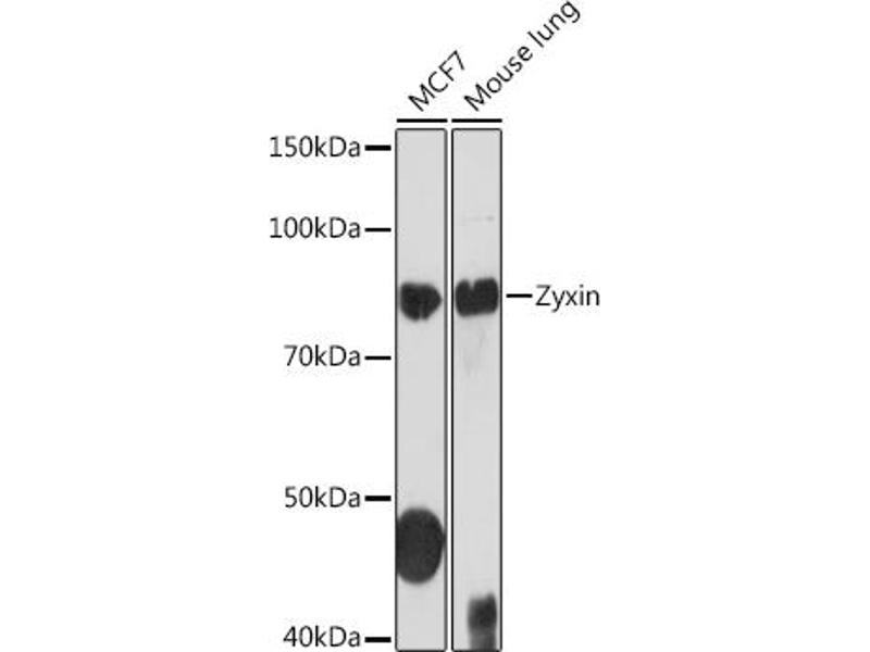- Focal adhesions are actin-rich structures that enable cells to adhere to the extracellular matrix and at which protein complexes involved in signal transduction assemble. Zyxin is a zinc-binding phosphoprotein that concentrates at focal adhesions and along the actin cytoskeleton. Zyxin has an N-terminal proline-rich domain and three LIM domains in its C-terminal half. The proline-rich domain may interact with SH3 domains of proteins involved in signal transduction pathways while the LIM domains are likely involved in protein-protein binding. Zyxin may function as a messenger in the signal transduction pathway that mediates adhesion-stimulated changes in gene expression and may modulate the cytoskeletal organization of actin bundles. Alternative splicing results in multiple transcript variants that encode the same isoform. [provided by RefSeq, Jul 2008],ESP-2, HED-2,Cell Adhesion,Cell Biology & Developmental Biology,Cytoskeleton,Cytoskeleton_Microfilaments,Epigenetics & Nuclear Signaling,Neuroscience,RNA Binding,Signal Transduction,Transcription Factors,ZYX