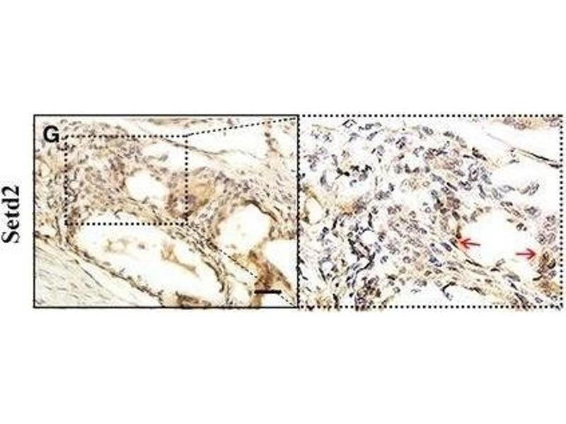 Huntington's disease (HD), a neurodegenerative disorder characterized by loss of striatal neurons, is caused by an expansion of a polyglutamine tract in the HD protein huntingtin. This gene encodes a protein belonging to a class of huntingtin interacting proteins characterized by WW motifs. This protein is a histone methyltransferase that is specific for lysine-36 of histone H3, and methylation of this residue is associated with active chromatin. This protein also contains a novel transcriptional activation domain and has been found associated with hyperphosphorylated RNA polymerase II.,SETD2,HBP231,HIF-1,HIP-1,HSPC069,HYPB,KMT3A,LLS,SET2,p231HBP,Epigenetics & Nuclear Signaling,Chromatin Modifying Enzymes,Methylation,SETD2