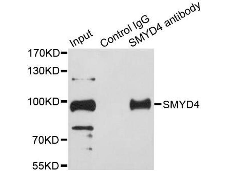 Plays a critical role in cardiac development. Acts as a key epigenetic regulator of gene expression during cardiac development via its dual activities as a methyltransferase and negative regulator of HDAC1 (By similarity.,SMYD4,ZMYND21,Epigenetics & Nuclear Signaling,Cancer,Tumor suppressors,SMYD4