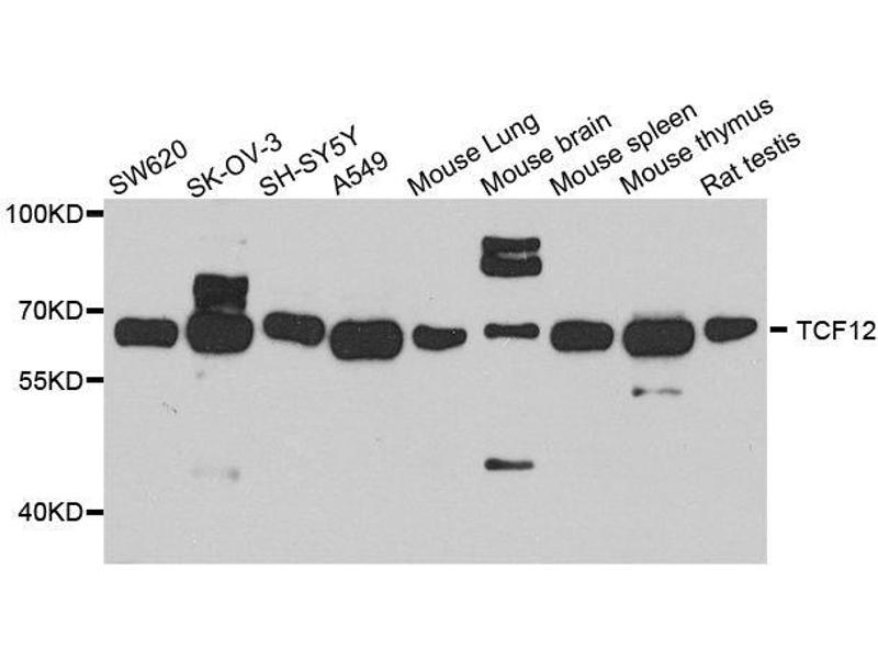 The Rabbit Polyclonal anti-TCF12 antibody has been validated for WB. It is suitable to detect TCF12 in samples from Human.