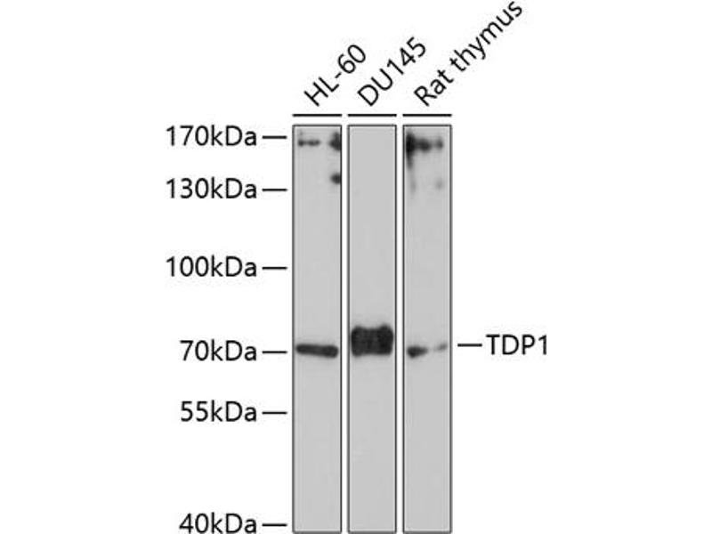The protein encoded by this gene is involved in repairing stalled topoisomerase I-DNA complexes by catalyzing the hydrolysis of the phosphodiester bond between the tyrosine residue of topoisomerase I and the 3-prime phosphate of DNA. This protein may also remove glycolate from single-stranded DNA containing 3-prime phosphoglycolate, suggesting a role in repair of free-radical mediated DNA double-strand breaks. This gene is a member of the phospholipase D family and contains two PLD phosphodiesterase domains. Mutations in this gene are associated with the disease spinocerebellar ataxia with axonal neuropathy (SCAN1).,TDP1,Epigenetics & Nuclear Signaling,Cancer,Drug resistance,Topoisomerases,TDP1