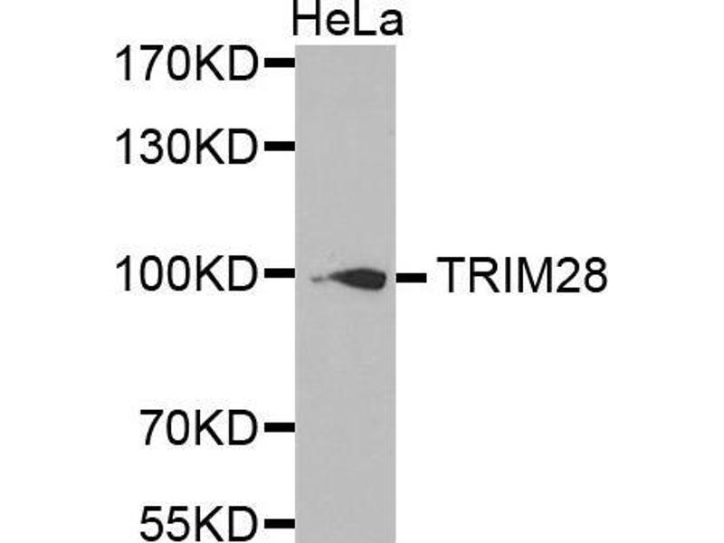 This Rabbit Polyclonal antibody specifically detects KAP1 in WB, IHC, IF and IP. It exhibits reactivity toward Human.It has been mentioned in 1 publication