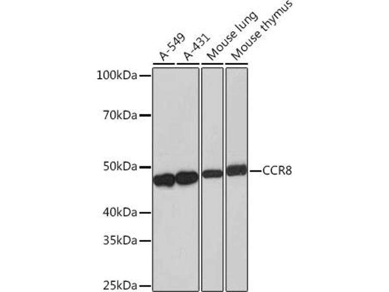 This gene encodes a member of the beta chemokine receptor family, which is predicted to be a seven transmembrane protein similar to G protein-coupled receptors. Chemokines and their receptors are important for the migration of various cell types into the inflammatory sites. This receptor protein preferentially expresses in the thymus. I-309, thymus activation-regulated cytokine (TARC) and macrophage inflammatory protein-1 beta (MIP-1 beta) have been identified as ligands of this receptor. Studies of this receptor and its ligands suggested its role in regulation of monocyte chemotaxis and thymic cell apoptosis. More specifically, this receptor may contribute to the proper positioning of activated T cells within the antigenic challenge sites and specialized areas of lymphoid tissues. This gene is located at the chemokine receptor gene cluster region. [provided by RefSeq, Jul 2008],CC-CKR-8, CCR-8, CDw198, CKRL1, CMKBR8, CMKBRL2, CY6, GPRCY6, TER1,CDs,Cell Intrinsic Innate Immunity Signaling Pathway,G protein signaling,G protein signaling_G-Protein-Coupled Receptors(GPCR),Immunology & Inflammation,Innate Immunity_Chemokines,Signal Transduction,CCR8