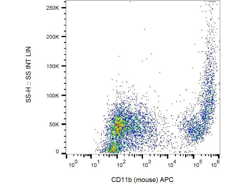 The rat monoclonal antibody M1/70 detects an extracellular epitope of CD11b (integrin alphaM subunit), a type I transmembrane protein mainly expressed on monocytes/macrophages, granulocytes and NK-cells, which associates with CD18 to form Mac-1 integrin that plays important role in cell-cell interactions.