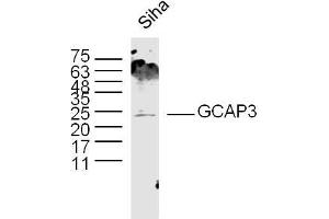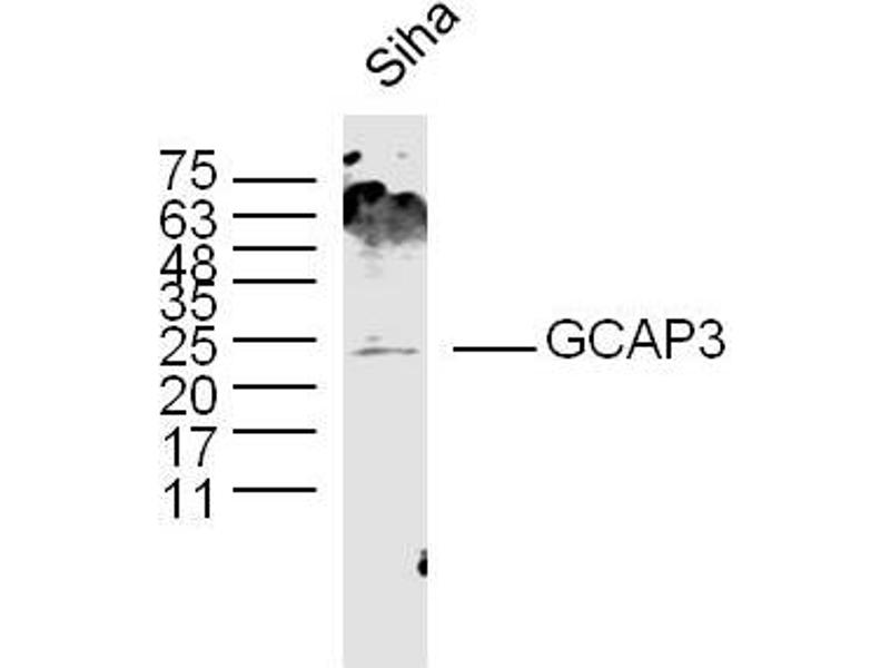 Background: The intracellular stimulation of guanylate cyclase (GC) by calcium, a key event in the recovery of the dark state of rod photoreceptors after exposure to light, is mediated by guanylate cyclase-activating proteins (GCAP). GCAPs are calcium-binding proteins belonging to the calmodulin superfamily and are specifically expressed in retina. GCAP3 (Guanylyl cyclase-activating protein 3), also known as GUCA1C (Guanylate cyclase activator 1C), is a 209 amino acid EF-hand calcium binding protein that is activated by the decrease in calcium from the absorption of light by rhodopsin. Activation of GCAP3 leads to stimulation of guanylate cyclase 1 and 2 (GC1 and GC2), which increases cGMP concentration. Calcium sensitive regulation of GC is essential in recovery of the rod receptor dark state following light exposure. There are two isoforms of GCAP3 that are produced as a result of alternative splicing events.