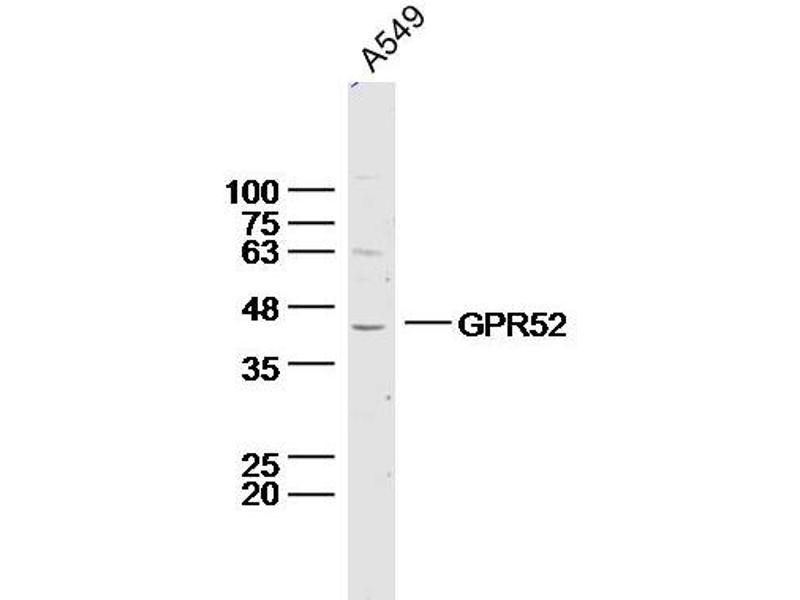 Background: G protein-coupled receptors (GPRs), also known as seven transmembrane receptors, heptahelical receptors or 7TM receptors, comprise a superfamily of proteins that play a role in many different stimulus-response pathways. G protein coupled receptors translate extracellular signals into intracellular signals (G protein activation) and they respond to a variety of signaling molecules, such as hormones and neurotransmitters. GPR52 (G protein-coupled receptor 52) is a 361 amino acid multi-pass membrane protein that belongs to the G-protein coupled receptor 1 family and has been found to be expressed in the caudate and putamen regions of the brain. The gene encoding GPR52 maps to human chromosome 1, the largest human chromosome spanning about 260 million base pairs and making up 8 % of the human genome.