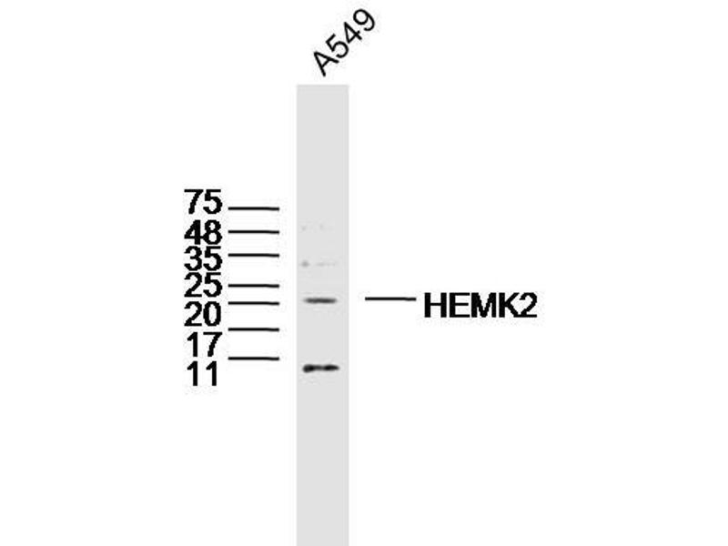 Background: HEMK2 is a 214 amino acid protein that belongs to the methyltransferase superfamily and exists as multiple alternatively spliced isoforms. The gene encoding HEMK2 maps to human chromosome 21, which houses approximately 300 genes and comprises nearly 1.5 % of the human genome. Chromosome 21-associated disorders include Alzheimer's disease, amyotrophic lateral sclerosis and, most notably, Down syndrome (also known as trisomy 21).