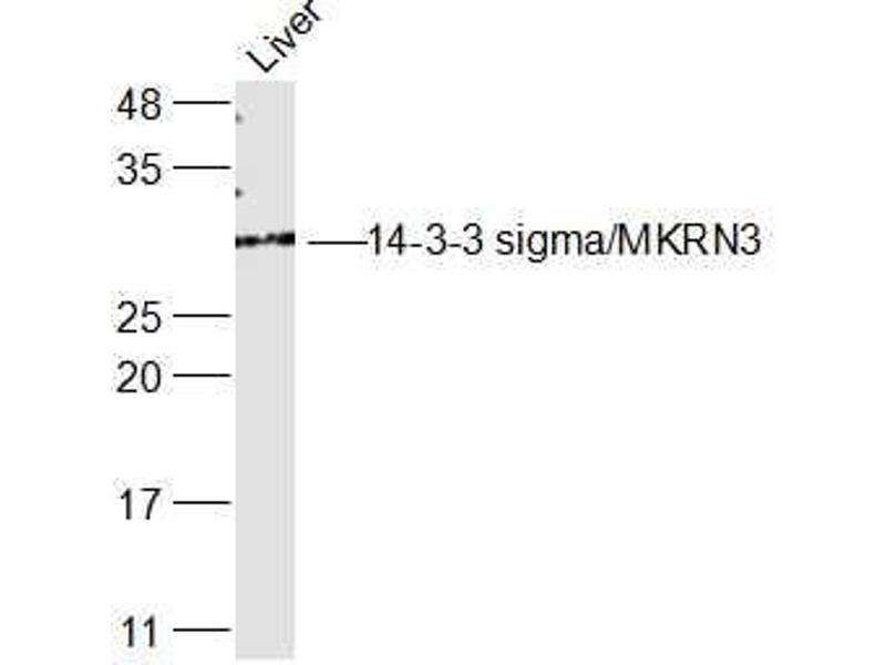 Synonyms: 14 3 3 protein sigma, 14-3-3 protein sigma, 1433S_HUMAN, Epithelial cell marker protein 1, Er, HME 1, HME1, MGC143283, Mkrn3, Mme1, OTTHUMP00000004242, RP23 137L22.11, SFN, SFN protein, Stratin, YWHAS.