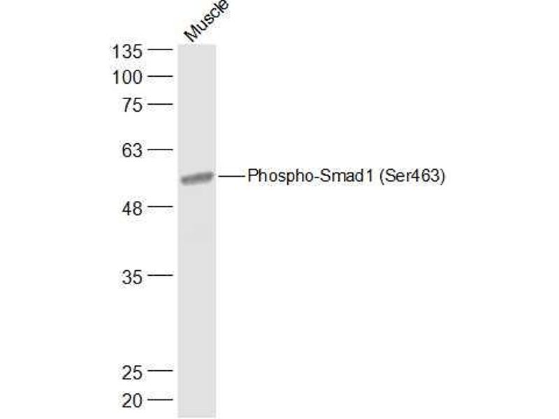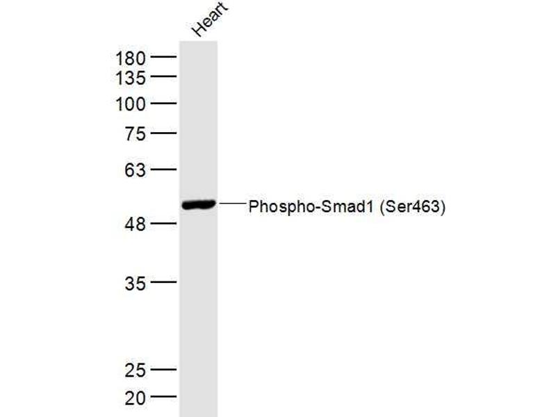 Synonyms: Smad1 phospho S463, Smad1 phospho Ser463, p-Smad1 Ser463, Mothers against decapentaplegic homolog 1, BSP 1, BSP1, BSP-1, Dwarfin A, DwfA, hSMAD 1, hSMAD1, JV 41, JV4 1, JV4-1, JV41, MAD mothers against decapentaplegic homolog 1, Mad related protein 1, MADH 1, MADH1, Madr 1, MADR1, Mothers against decapentaplegic homolog 1, Mothers against DPP homolog 1, Sma and Mad related protein 1, SMAD 1, SMAD-1, SMAD family member 1, SMAD mothers against DPP homolog 1 Drosophila, Spinal muscular atrophy distal with upper limb predominance, TGF beta signaling protein 1, Transforming growth factor beta signaling protein 1, SMAD1_HUMAN, MAD homolog 1, Mothers against DPP homolog 1, Mad-related protein 1, SMAD family member 1, Smad1, Transforming growth factor-beta-signaling protein 1.