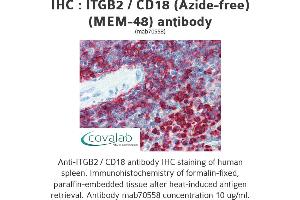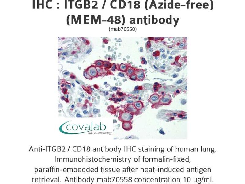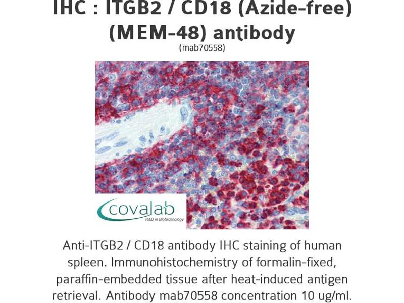 - Reacts with azide-free human ITGB2 / CD18